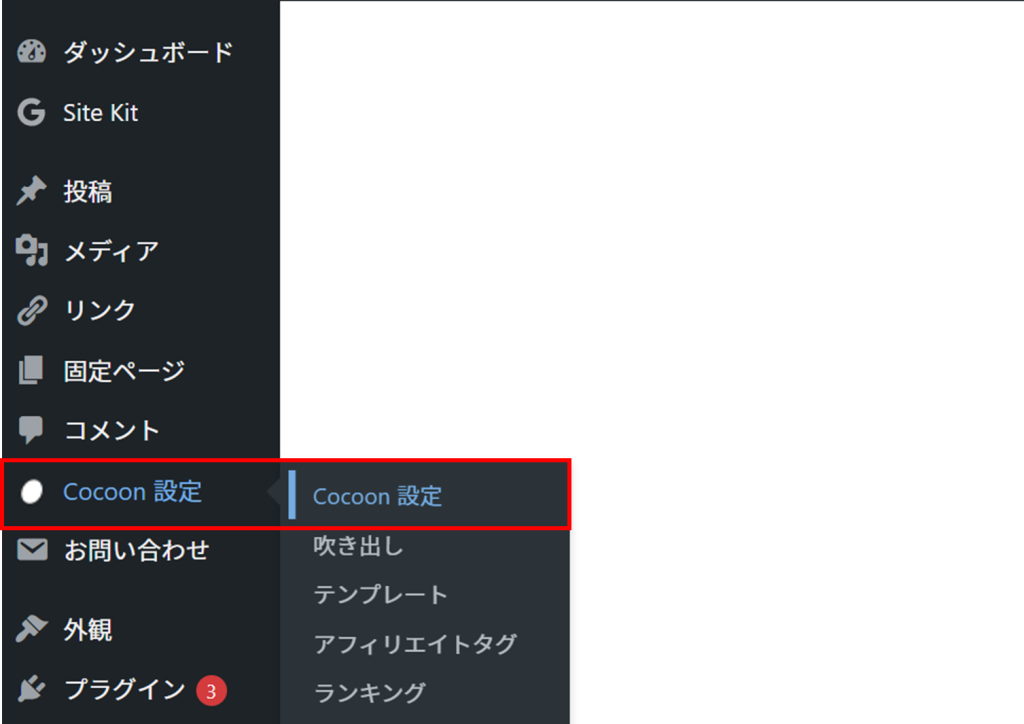- STEP 01WordPressの管理画面から、「Cocoon設定」を開く