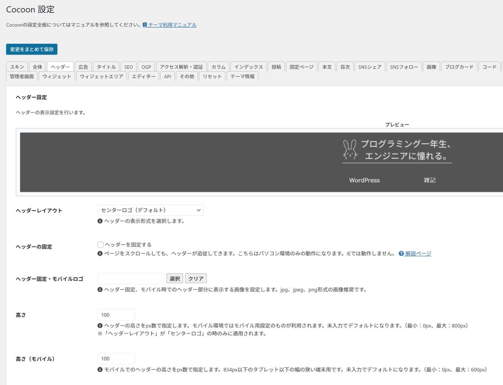 この記事では、ブログのヘッダー部分をCocoonの「ヘッダーモバイルボタン」を利用して整える方法を紹介した。