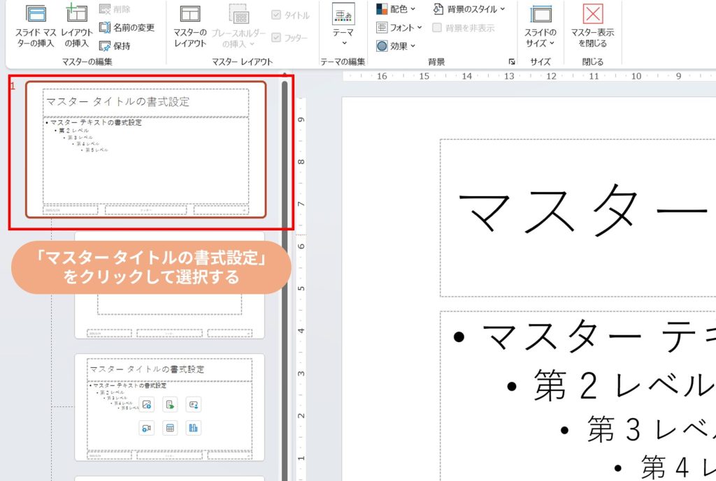 - STEP 03画面左側の、「マスター タイトルの書式設定」をクリックして選択する。