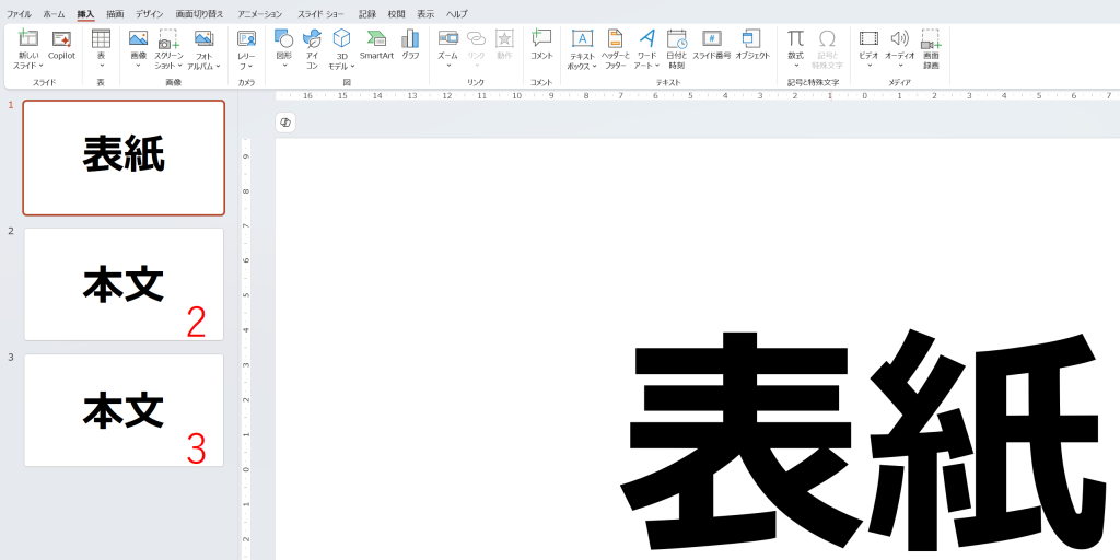 上記の設定をすると、表紙にもページ番号が表示されている。ふつう表紙にページ番号は不要なので、削除しよう。