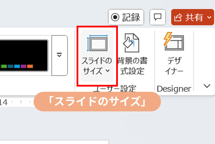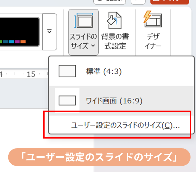 - STEP 03「ユーザー設定のスライドのサイズ」をクリックする。