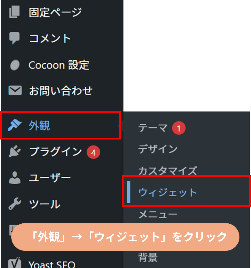 - STEP 01「外観」→「ウィジェット」をクリックする。