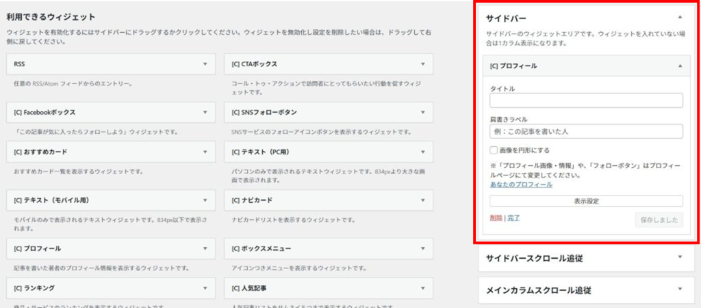 サイドバーにプロフィールを設置する方法