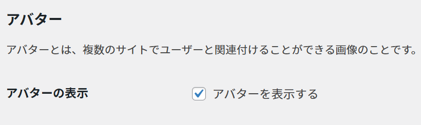 その場合は、管理画面の「設定」→「ディスカッション」を開き、「アバターを表示する」にチェックが入っているかどうかを確認する。ここにチェックが入っていないと、プロフィール画像が表示されない。