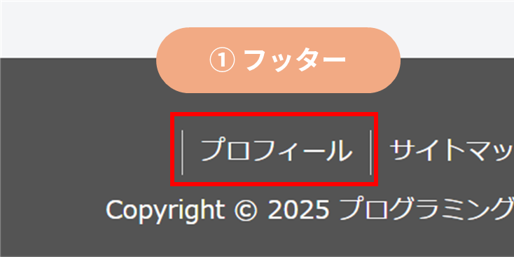 既にフッターに「お問い合わせ」や「プライバシーポリシー」を作成している場合。この場合は既に作成しているメニューに「プロフィール」を追加するだけでよい。